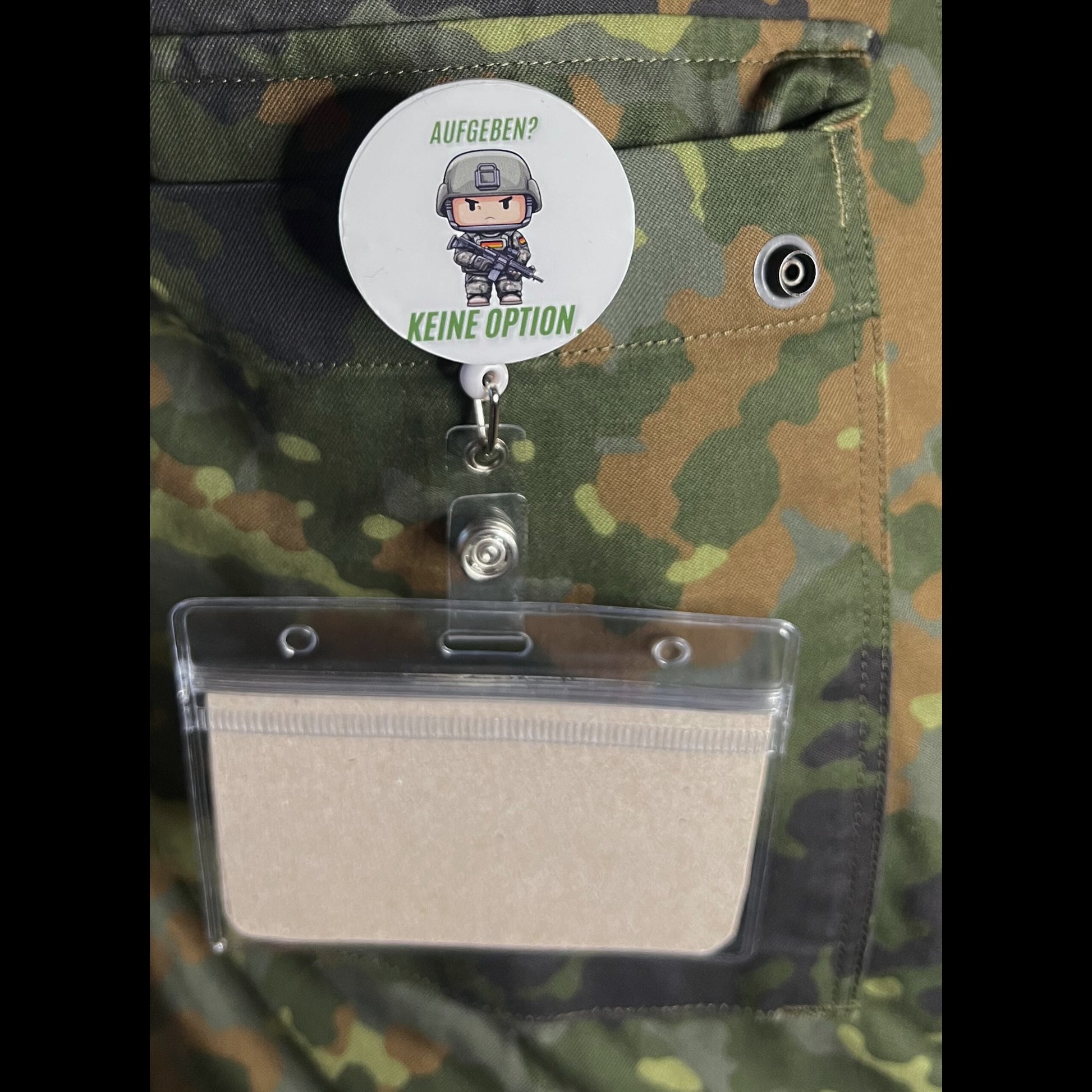 Robust, funktional und mit klarer Haltung – dieses Ausweishalter-Starterpack ist gemacht für den Bundeswehr-Alltag. Das Design „Niemals aufgeben“ steht für Durchhaltevermögen, Kameradschaft und Einsatzbereitschaft – ob im Dienst, auf Übung oder im Büro.