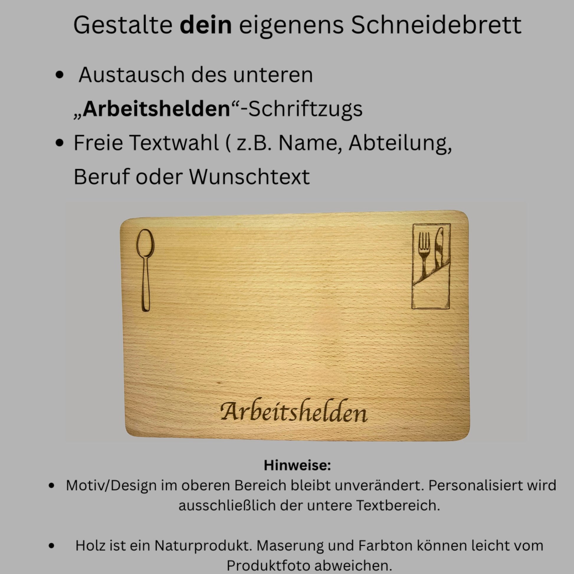 Robust, praktisch und stilvoll – dieses Schneidebrett aus Holz im Gastro-Design ist dein perfekter Begleiter für jede Snack- oder Zubereitungspause. Ob Schneiden, Servieren oder als Geschenk – das Brett bietet oben ein Gastro-Symbol, in der Mitte ausreichend Platz zum Schneiden und unten kannst du es kostenlos personalisieren: mit Name, Spruch oder kurzer Botschaft. Ideal für den Arbeitsalltag in Küche, Bar oder Servicebereich.